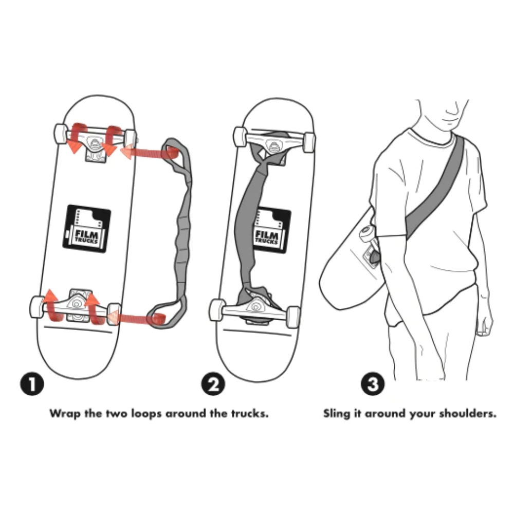 Der Film Trucks Bike Ride ist perfekt, um dein Skateboard beim Radfahren auf dem Rücken zu tragen. Es hat zwei Schlaufen, um um Ihre Lastwagen zu wickeln.