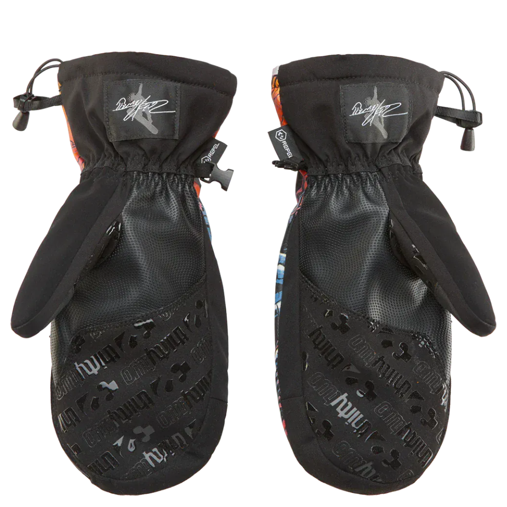 • Ein fingerfreier Seitenreißverschluss (Side Zip) für einfaches An- und Ausziehen, ohne die Fäustlinge komplett ausziehen zu müssen.
