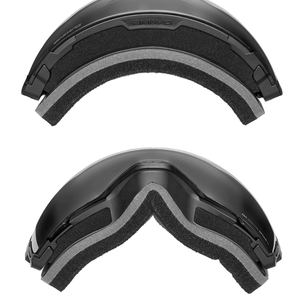 Obere und untere Belüftungsöffnungen + dreilagiger Sorona®-Gesichtsschaum für Komfort, passgenauen Sitz und klare Sicht ohne Beschlagen.