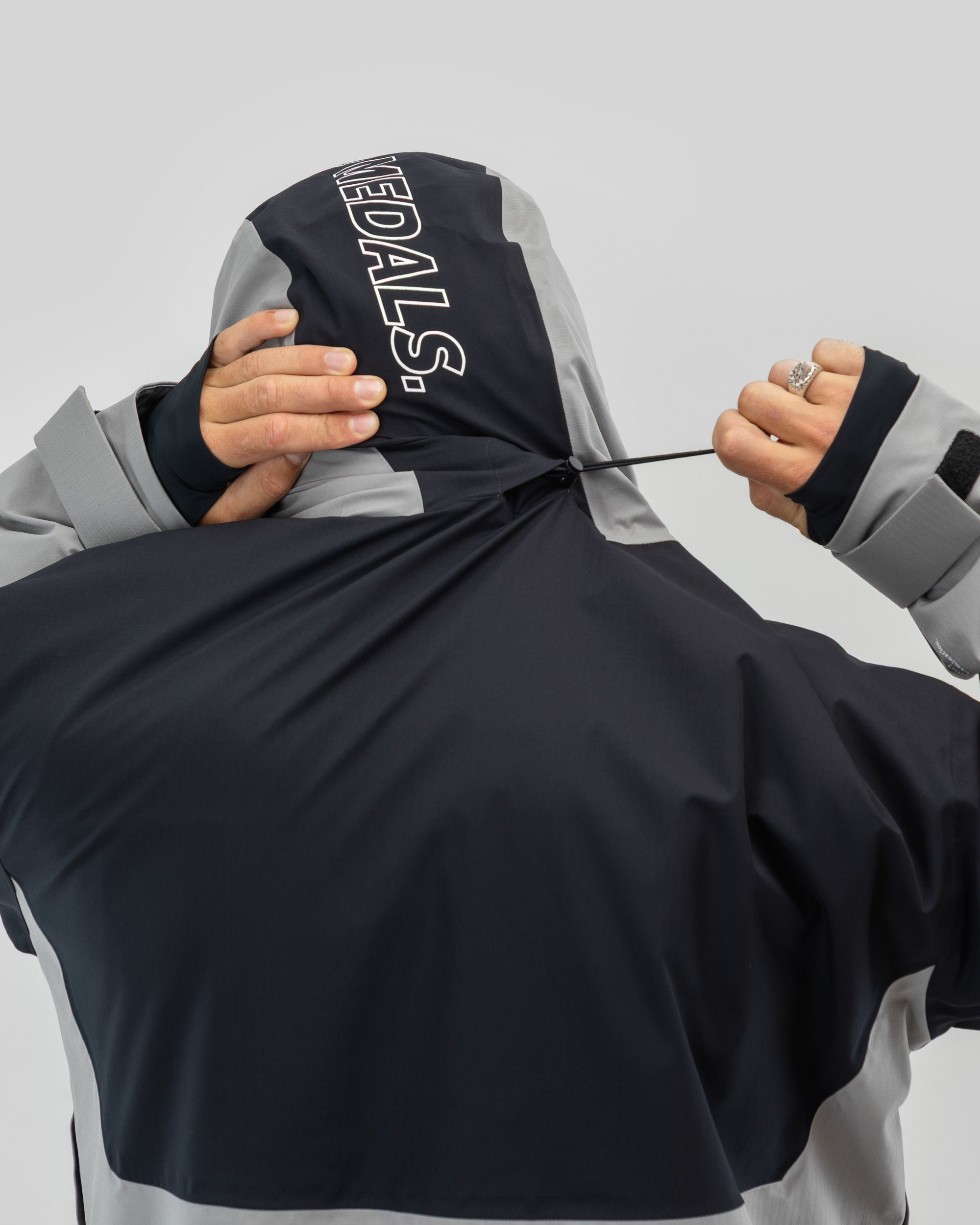 Zu den funktionellen Merkmalen gehören Mesh-Belüftungsöffnungen unter den Armen, eine in zwei Richtungen verstellbare Kapuze und ein verstellbarer Saum, ein elastischer Schneefang mit Hosenbefestigung und Stretch-Bündchen mit Daumenlöchern. Optimale Aufbewahrungsmöglichkeiten bieten eine Ärmeltasche, eine Media-Innentasche und eine Netz-Innentasche für Brillen und Handschuhe. Mit Druckdetails auf der Brust, der Kapuze und den Ärmeln ist dies ein klassischer Ripstop.