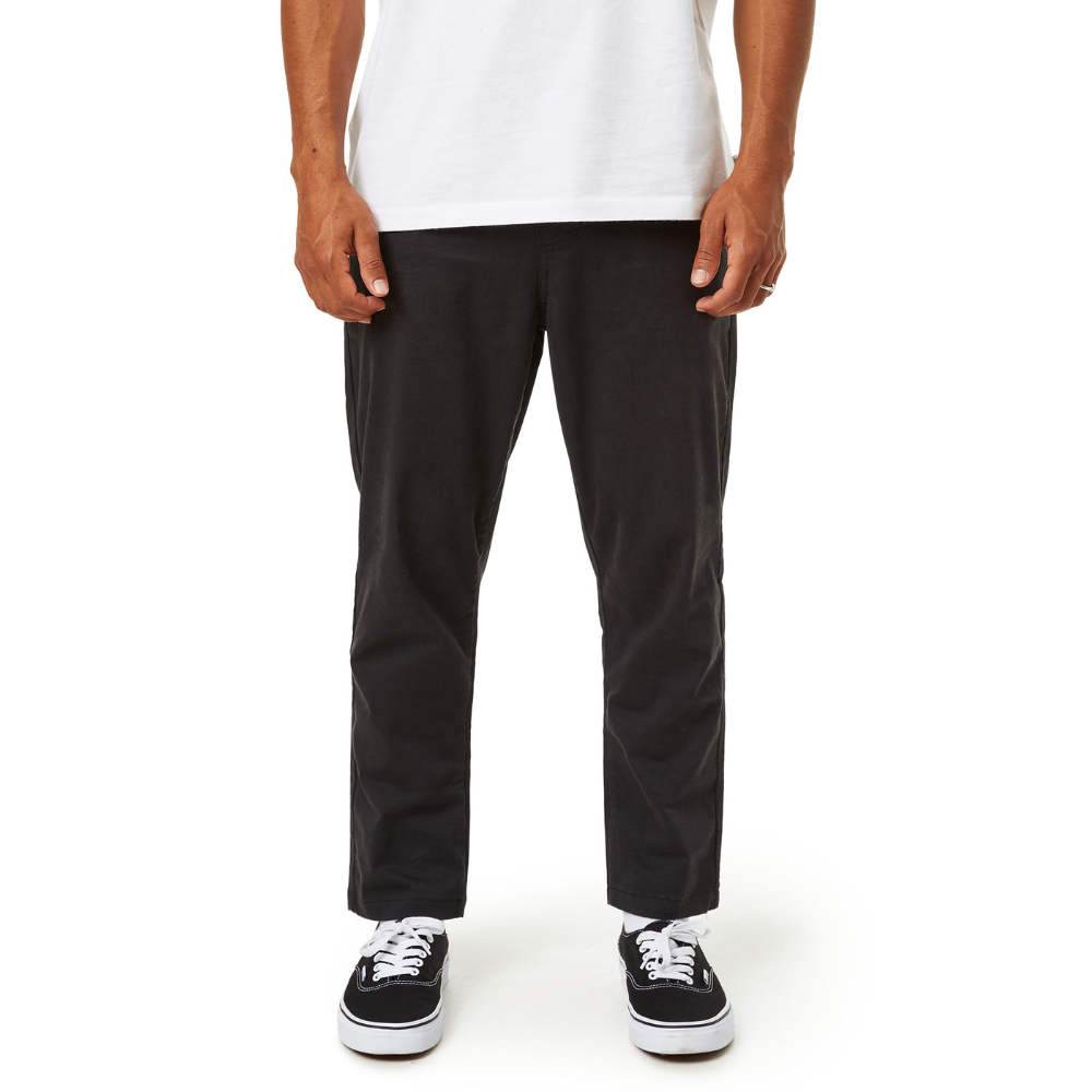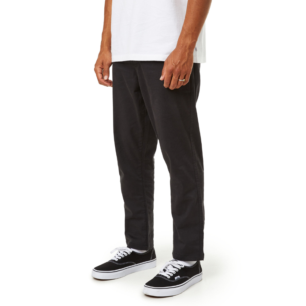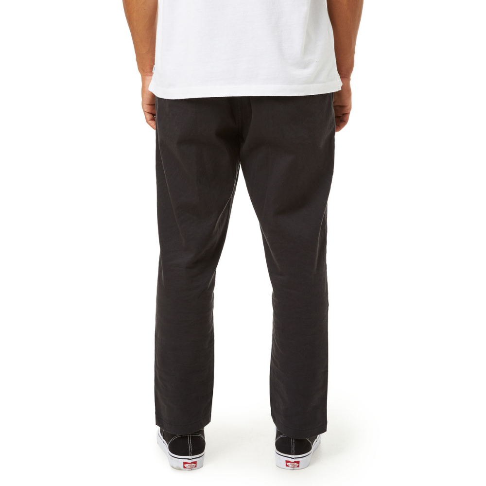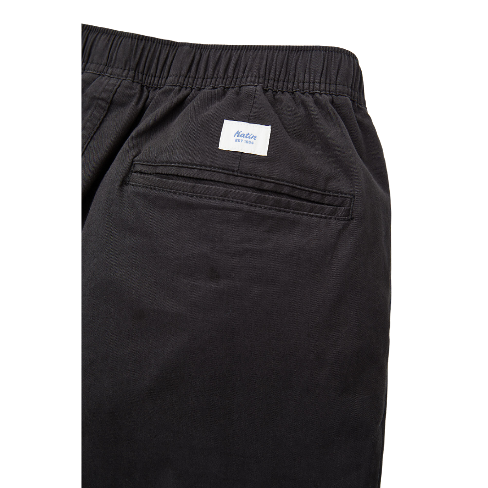 Die Katin Stand Pants Washed Black hat einen elastischen Bund mit Kordelzug, zwei aufgesetzte Gesäßtaschen und sauber verarbeitete Nähte auf der Innenseite. Diese Hose ist perfekt für alle, die sowohl Stil als auch Komfort suchen.