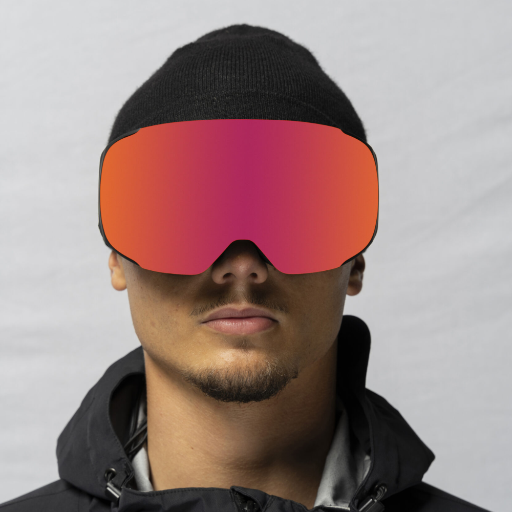Der Rahmen hat eine sphärische Scheibe, die maximale Sicht in alle Richtungen bietet - nützlich für Freeride-, Pisten- oder Park-Sessions.