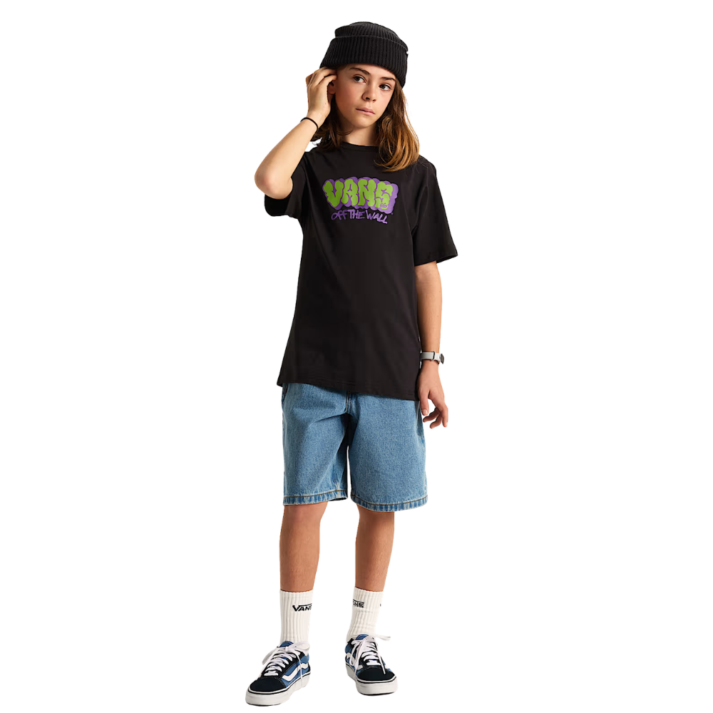 Das Vans Kids Graff T-Shirt Black ist ein kühnes Essential für junge Skater mit kreativem Anspruch. Die Graff-Style-Grafik verleiht sofortige Attitüde - perfekt für jeden Tag, von der Schule bis zum Skatepark.