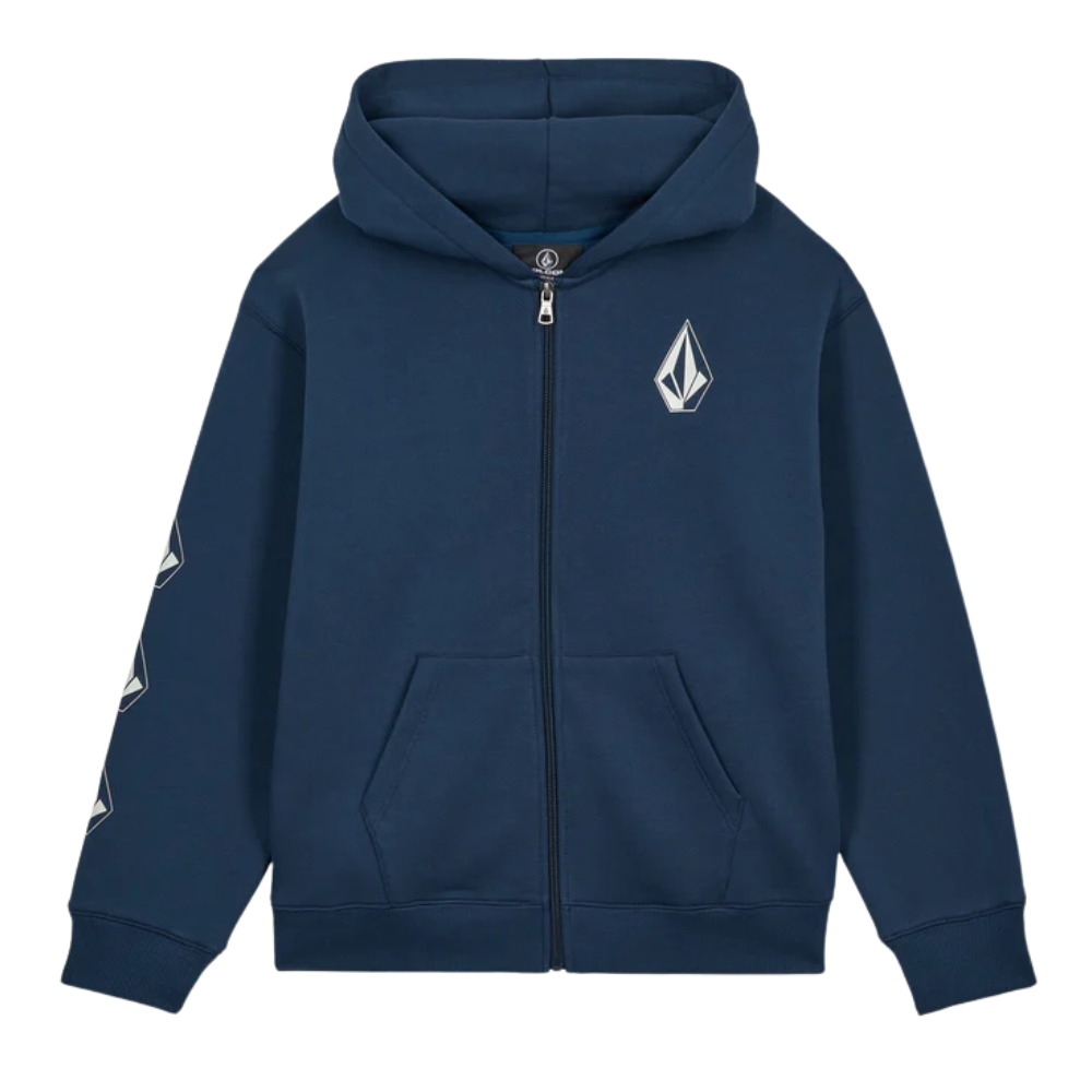 Der Volcom Kids Iconic Stone Gid Full Zip Hoodie Dust Bowl Indigo ist ein cooler und bequemer Kapuzenpullover mit Reißverschluss für junge Rider, die auch außerhalb des Skateparks Stil zeigen wollen. Die Farbe Dust Bowl Indigo verleiht ihm einen coolen Alltagslook, während die im Dunkeln leuchtende Stone-Grafik ein zusätzliches lustiges Detail darstellt.