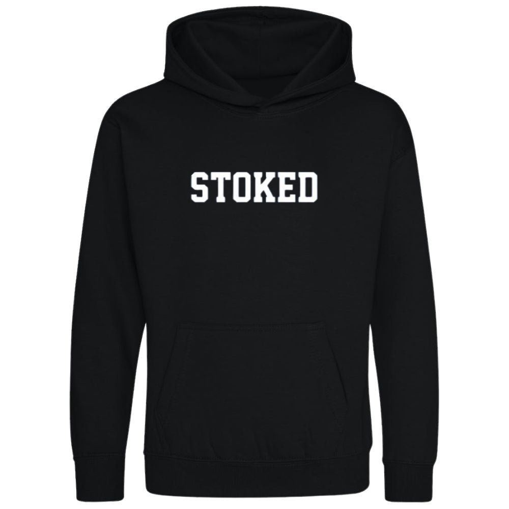 Met de Kids Maxi Script Hoodie Deep Black van Stoked Board Co represent je jouw favoriete boardmerk met classy style . Het Stoked Script logo groot op de borst laat zien hoe hyped jij bent en geeft een mooi contrast op de hoodie. Een comfortabele neklijn en zachte binnenkant maken deze hoodie helemaal af.