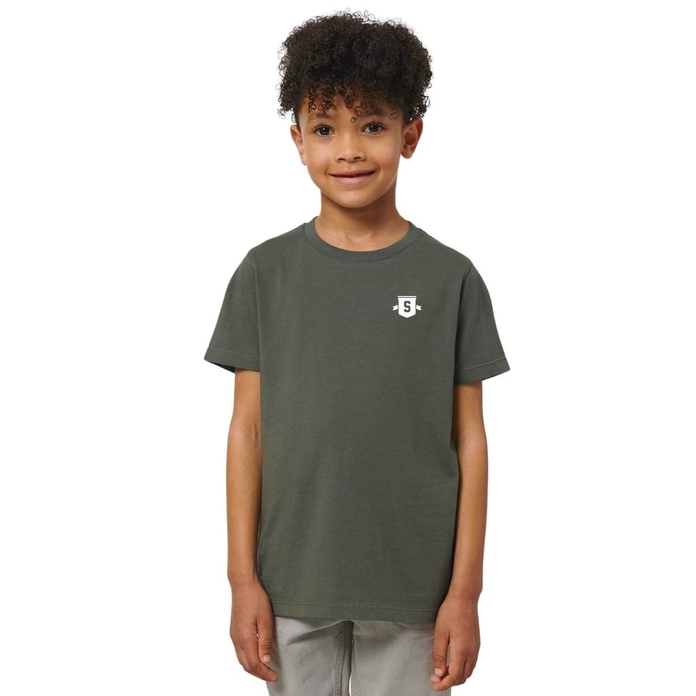Met de Kids Mini Shield T-Shirt Khaki van Stoked Board Co represent je jouw favoriete boardmerk met classy style. Het Stoked Shield logo subtiel op de borst laat zien hoe hyped jij bent en geeft een mooi contrast op de T-shirt. De verstevigingsband in de hals en het breed dubbel stiksel maken deze T-shirt helemaal af.