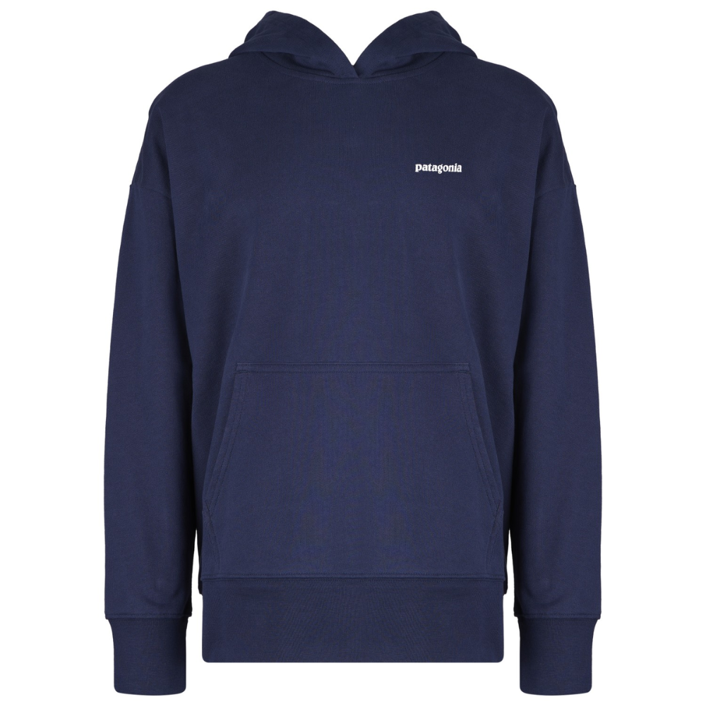 Das Patagonia Kinder-Kapuzen-Sweatshirt - P-6 Logo: New Navy ist eine strapazierfähige und bequeme Wahl für Kinder, hergestellt aus natürlichen Materialien. Dieses Kapuzensweatshirt besteht zu 80 % aus Baumwolle in Conversion und zu 20 % aus gebürstetem Kapok-Naturfaser-Fleece, wodurch es weich, atmungsaktiv und strapazierfähig ist. Mit seiner lockeren Passform, den überschnittenen Schultern und der funktionellen Kängurutasche ist dieser Kapuzenpullover praktisch und modisch. Durch die Fair Trade Certified™-Produktion und das Hand-it-along-Etikett ist dieses Kleidungsstück dazu gemacht, lange zu halten und weitergegeben zu werden.