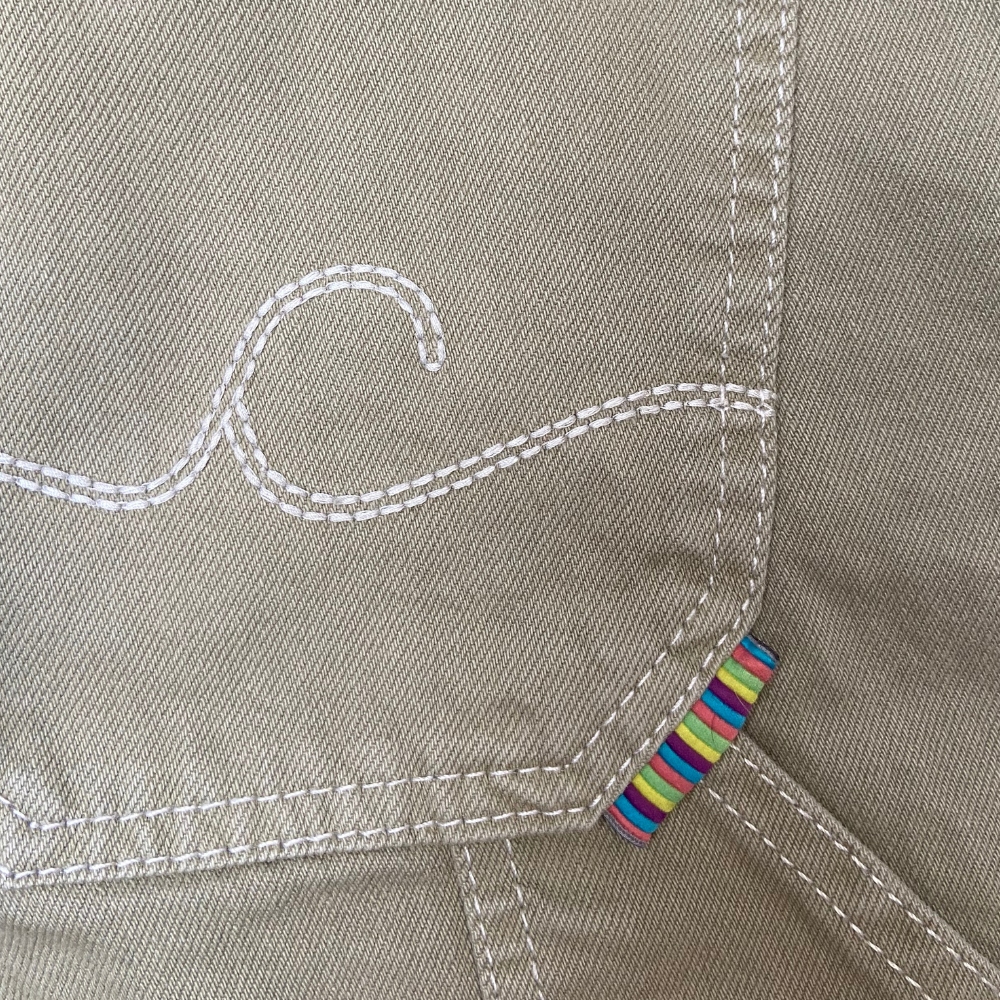 - Opvallend borduurwerk op de linkerbroekspijp voor een stijlvolle uitstraling