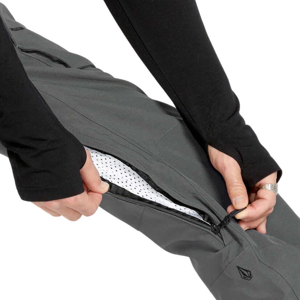 Der Volcom Roan Snowboard Bib Overall - Charcoal bietet den perfekten Schutz vor den Elementen mit 15K Wasserdichtigkeit und Atmungsaktivität. Hergestellt aus recycelten REPREVE®-Fasern und einer PFC-freien DWR-Beschichtung, kombiniert dieses 2-lagige V-Science-Obermaterial umweltfreundliche Materialien mit ausgezeichneter Leistung. Mit ihrer entspannten Passform, den verstellbaren Hosenträgern und den Neopren-Seiteneinsätzen bietet die Roan Bib eine bequeme Passform und Bewegungsfreiheit, während vollständig versiegelte Nähte und die Zip Tech®-Schnittstelle für optimalen Schneeschutz sorgen.