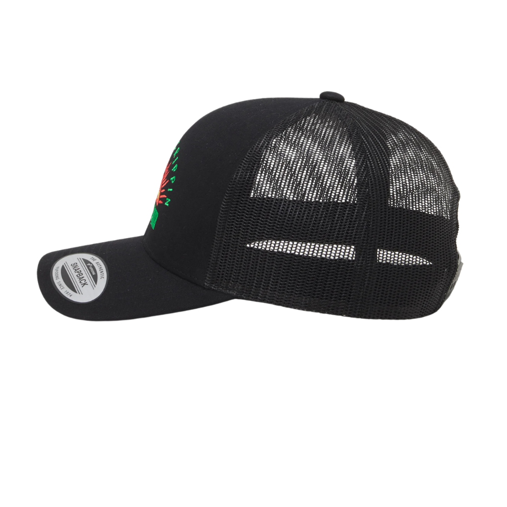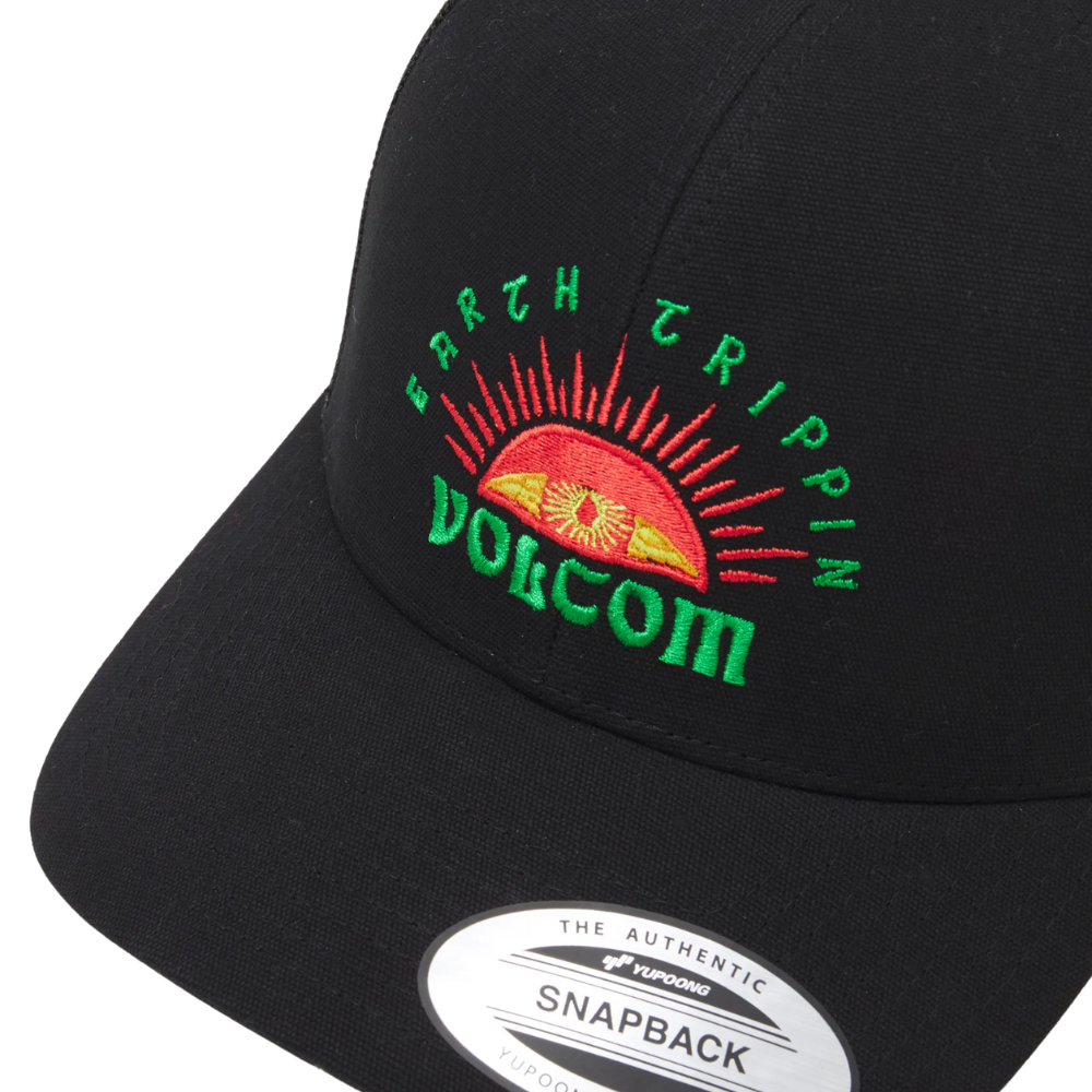 Die Volcom Sunset Tripper Trucker Cap Black hat eine super süße Stickerei auf der Vorderseite. In der Stimmung für Sonnenschein? Sei selbst der Sonnenschein mit dieser süßen Kappe.