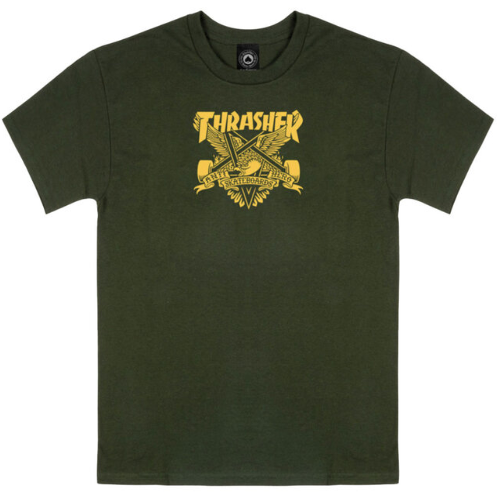 Das Eaglegram T-Shirt von Thrasher Magazine x Antihero Skateboards ist eine gute Wahl für alle, die auf der Suche nach einem bequemen und stylischen Look sind. Dieses schwarze T-Shirt ist perfekt für den Alltag und zeigt mit seinem einzigartigen Artwork deine Liebe zur Skatekultur.