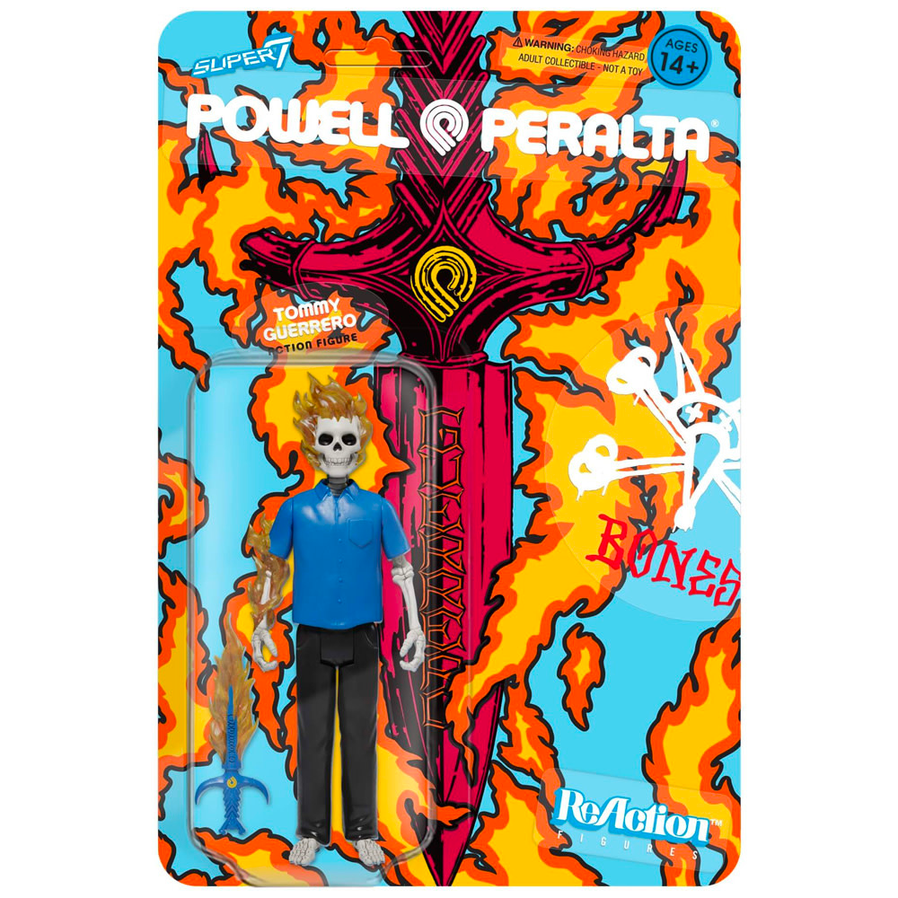 Tommy Guerrero staat bekend om zijn soepele, relaxte stijl die zijn skateboarden moeiteloos laat lijken. Maar iedereen die zijn bewegingen probeert na te doen, ontdekt al snel dat hij de enige is die het er zo gemakkelijk uit kan laten zien! Voeg nu de Tommy Guerrero ReAction Figure van Powell-Peralta toe aan je collectie! Deze figuur is 3,75 inch (9,53 cm) lang en heeft een gearticuleerd skeletlichaam. Daarnaast wordt hij geleverd met een accessoire in de vorm van een vurige dolk met doorschijnende vlammen. Geef je verzameling een boost met de Tommy Guerrero ReAction Figure van Powell-Peralta!