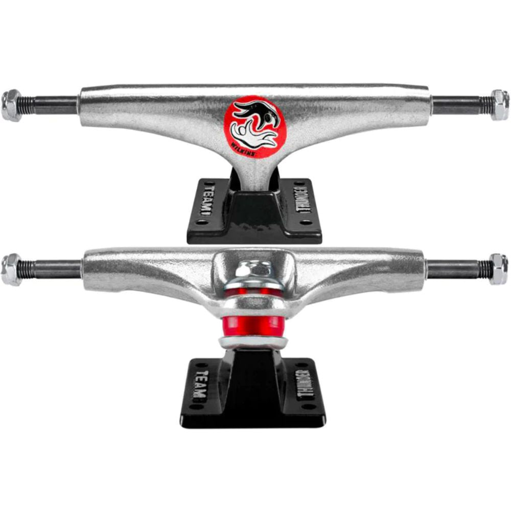De Thunder Wilkins Pro 148 Skateboard Trucks werden gemaakt door het bekende merk Thunder Trucks. Dit geweldige merk werd opgericht in 1986 en maakt sindsdien High Quality trucks voor de skate industrie. Ze hebben een awesome waslijst aan pro's zoals Ed Templeton, Dylan Ridere, Chris Cole, Mark Appleyard en nog veel meer. Thunder Trucks zit onder de vleugels van het Amerikaanse bedrijf Deluxe Distribution en garandeert dus topkwaliteit samen met merken zoals Real Skateboards, Krooked Skateboards en Venture Trucks. Deze prijs geldt voor een setje van 2 Trucks.