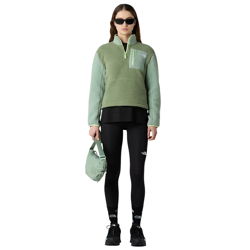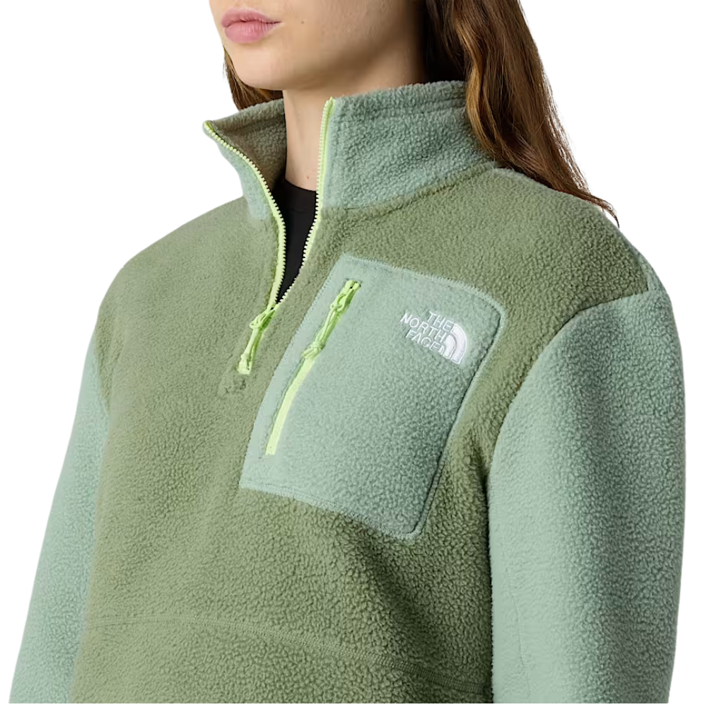 Die Womens Yumiori 1/4 Zip Fleece Jacket Twilight Galaxy Blue Flax von The North Face kombiniert Retro-Vibes mit moderner Performance. Diese leichte Fleecejacke in der Farbkombination Asphalt Grey/Burnt Umber ist die perfekte Schicht für kühle Tage, aktive Abenteuer oder einfach nur zum Chillen mit Stil.