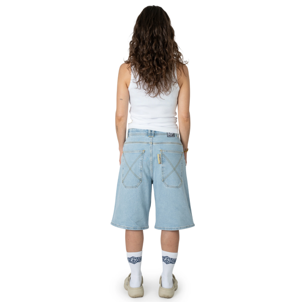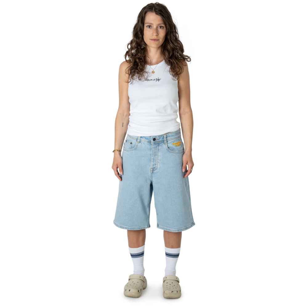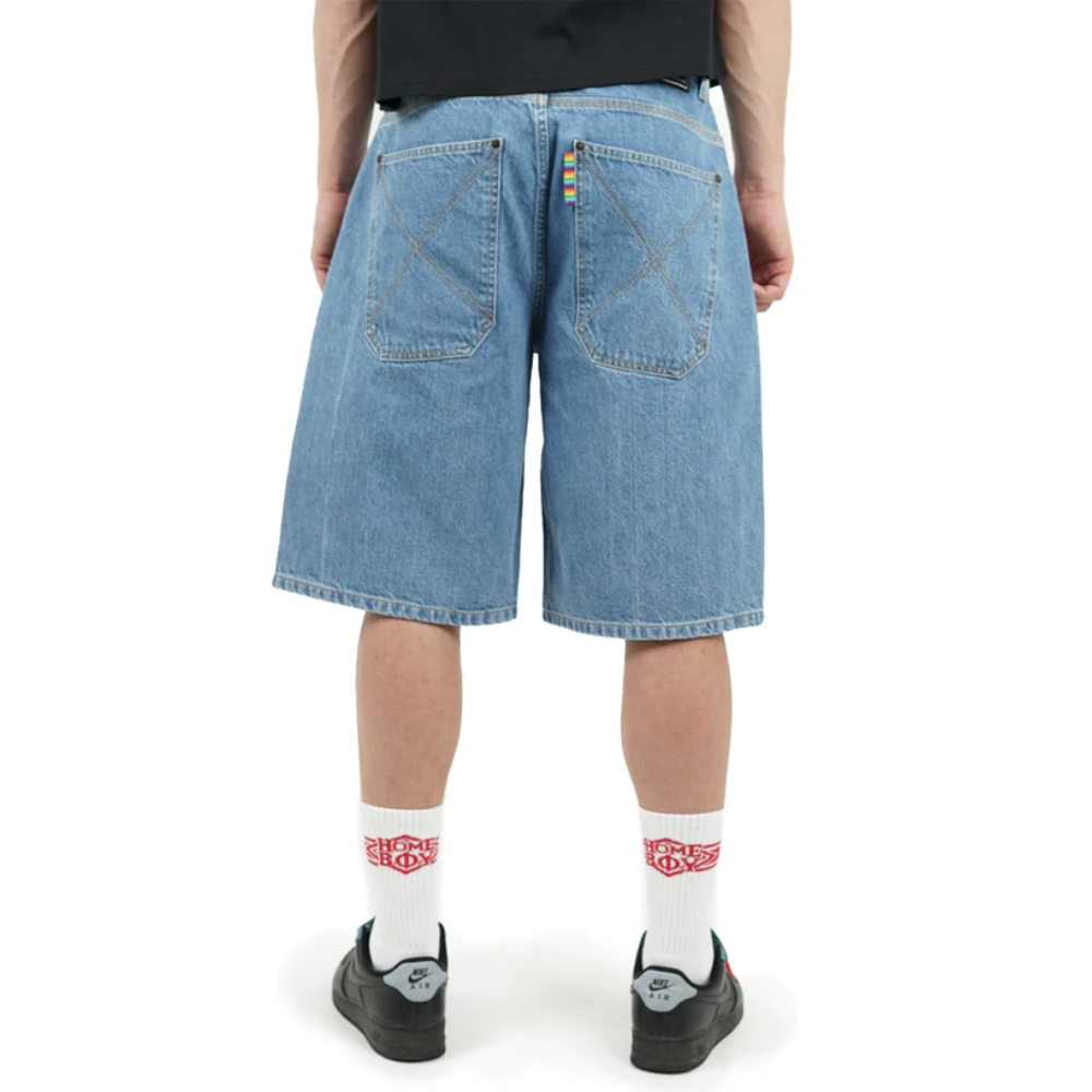 Die Homeboy X-tra Monster Shorts Moon sind monstermäßige Baggy Shorts für den Sommer von Homeboy. Sie hat ein weit geschnittenes Bein und verjüngt sich leicht zum Ende des Beins hin. Sie liegt an der Hüfte eng an und der Schritt ist nur wenig länger als bei normal geschnittenen Jeans. Die Beine enden knapp über den Knien.