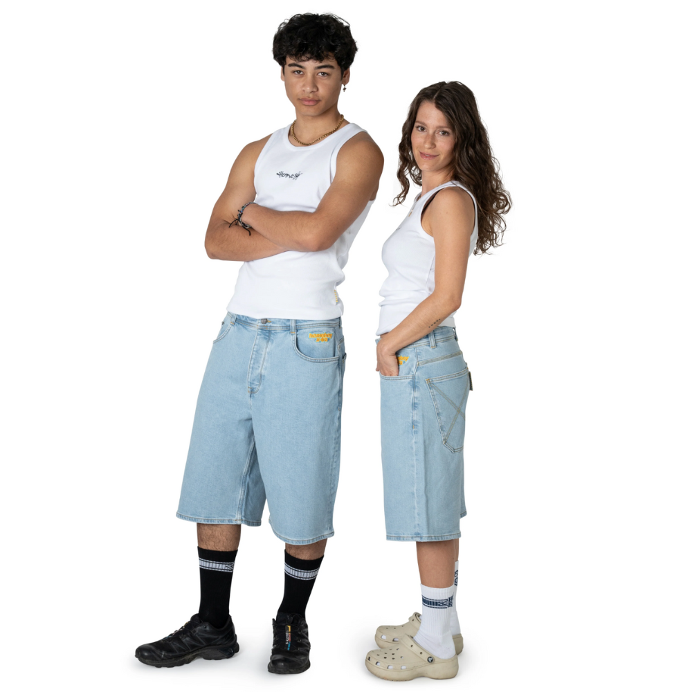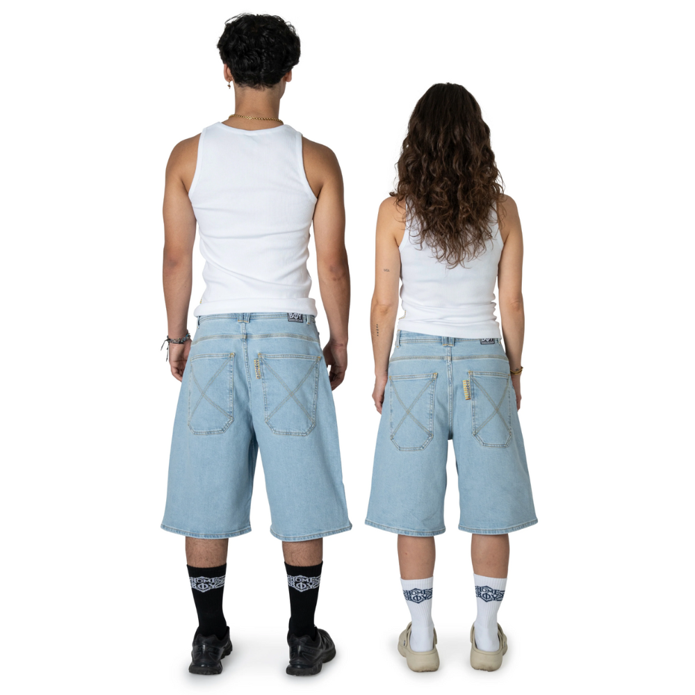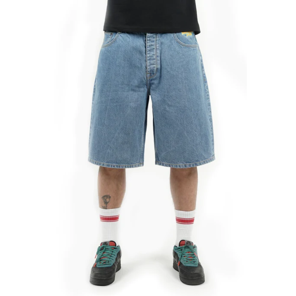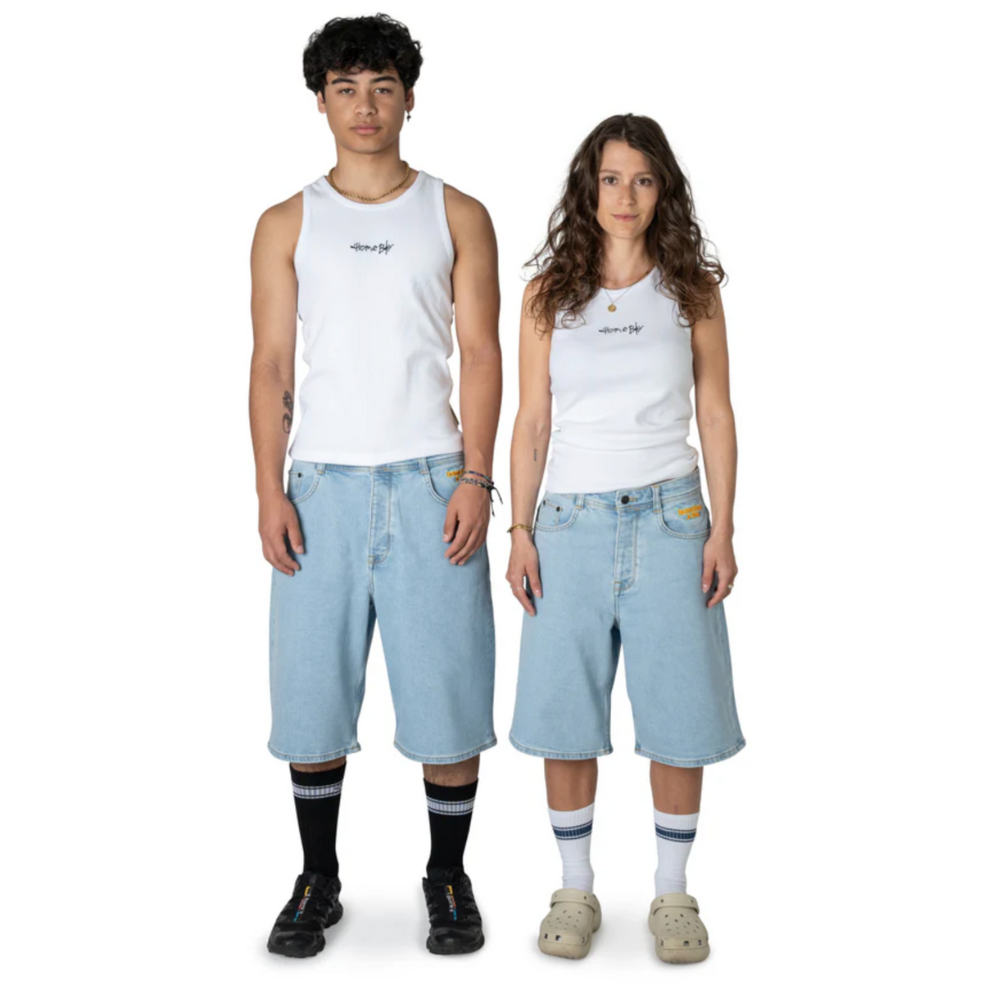 Die Homeboy X-tra Monster Shorts Moon sind monstermäßige Baggy Shorts für den Sommer von Homeboy. Sie hat ein weit geschnittenes Bein und verjüngt sich leicht zum Ende des Beins hin. Sie liegt an der Hüfte eng an und der Schritt ist nur wenig länger als bei normal geschnittenen Jeans. Die Beine enden knapp über den Knien.