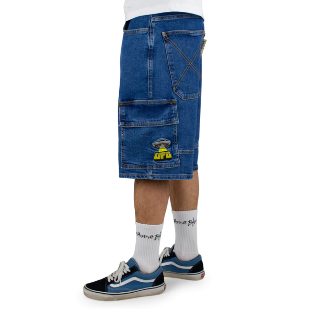 Die Homeboy UFO Cargo Shorts Washed Blue bieten reichlich Bewegungsfreiheit für heiße Sommertage, ideal bei einer Skatesession oder auf dem Weg zum Strand. Als moderne Neuinterpretation eines klassischen 90er-Jahre-Stils verfügen diese Shorts über charakteristische Details wie die "Homeboy x-tra"-Stickerei, den Rainbow Tab und die X-Naht an den Gesäßtaschen, die für authentische OG-Vibes sorgen.